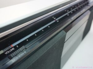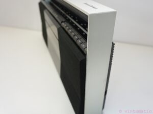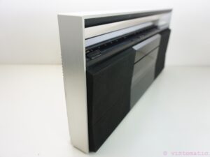 Beautiful Beosystem 10 – Radio Cassette Recorder from B&O with a nice mid-’80s design. This vintage B&O Portable “Boombox” was designed by David Lewis under type number 1521. The Beosystem 10 was the last portable Radio – Cassette Recorder from Bang & Olufsen. The radio is in very good working and great cosmetic condition, a very nice addition to your vintage home decoration or Hi-fi collection. Only one minor thing, when ejecting the cassette, the door get’s stuck to the panel door below it. Suggestion is to open the panel door first before ejecting the cassette. Minor detail, especially when you hear it play!