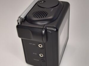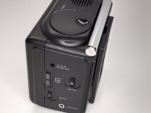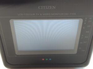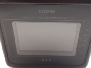 A wonderful pocket LCD TV/monitor from Citizen Electronics Japan. A fun gadget from the 1990’s. Connect your retro game console or video equipment to the input socket and watch or play! (needs separate 3.5mm jack to AV-cable, not included), see last picture*. The pocket LCD tv can be fixed on a tripod (not included)