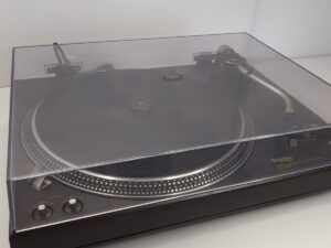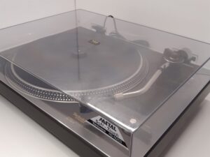 This is an overall maintenance-friendly very reliable direct drive turntable, no belt drive. Needs some oil once per 2000 hours. The dust cover has some scratches. The brown of the outer housing is a bit dull.