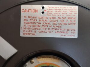 Plateau will be removed for shipment and packed separately and arm secured. The two transportation screws will be placed to prevent damage during shipment. Note: You need to remove both screws, before first use! (see pictures)