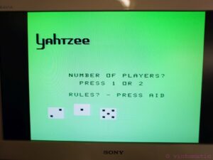 Includes an adapter (220V), Coax cable (Male-Female), PAL modulator, and two classic game cartridges—Adventure and Yahtzee. Time to relive the joy of these timeless games! Also includes some game instruction booklets. Please note, these booklets belong to other games and these games are not included.