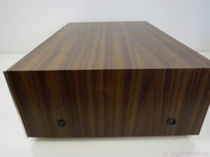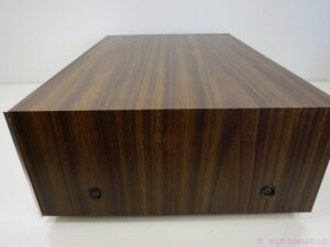 The top wooden panel has a small area of damage (please see pictures), which adds to its unique character while preserving its overall beauty. The rest of the unit is in excellent condition, ensuring a visually appealing addition to your audio setup.