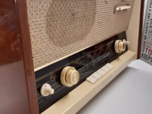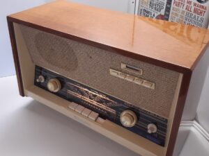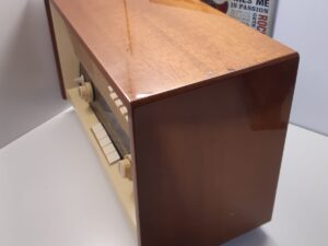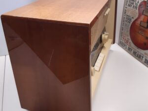 Condition: The radio is in great cosmetic and working condition for it’s age. The wooden case is very shiny and all the buttons are in working condition. A small scratch on the left-hand side of the wooden case (see picture) Please note, only some basic testing has been done. Radio has been tested for reception and sounds great.