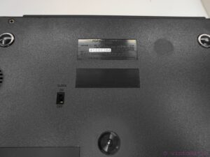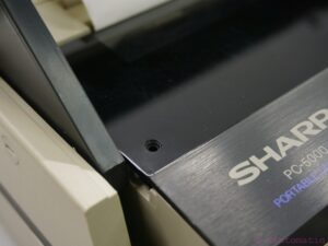 The Sharp PC-5000 is in an overall very good cosmetic and working condition. Some basic testing has been done. Printer doesn’t work properly (we couldn’t get it printing). One screw/clamp on the top plastic cover of the printer is missing (nothing serious, see picture). Battery not charging (due to age)