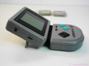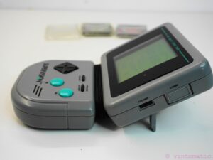 Vintage original Watara Supervision Handheld game console in very good condition with three games. Introduced in 1992 as a competitor for Nintendo’s Game Boy.