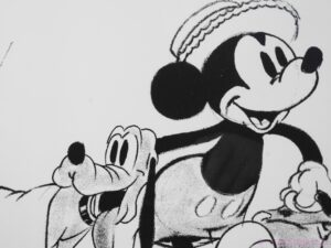 The Society Dog Show – 1939, Mickey Mouse Framed Poster is a collectible piece featuring the beloved Disney character Mickey Mouse and his dog Pluto. This poster is mounted on cardboard and is a silkscreen print from an original Disney drawing. It is printed on high quality paper and was originally made for Ikea of Sweden. It features a scene from the 1939 animated short film “Society Dog Show” and depicts Mickey Mouse as a proud dog owner, showing off his pooch at a fancy dog show.