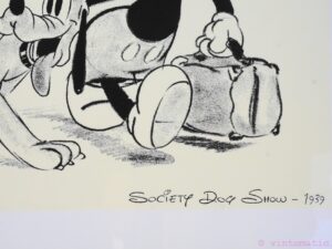 The poster is framed and would make a great addition to any Disney or animation fan’s collection. The 1939 “Society Dog Show” was a short film that was produced by Walt Disney Productions and released on February 18, 1939. It was directed by Bill Roberts and starred Mickey Mouse, his dog Pluto and other characters. This poster is featuring a favorite Disney character, Mickey Mouse and it would be a great addition to any collection or as a decor in any room.