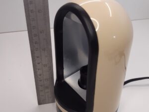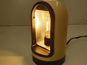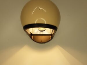 A pair of cool retro neo-space age design lamps, made by Fagerhult Belysning Sweden. The Fagerhults “Granat” lamps are produced in the seventies and can be used as a table or wall lamp. The “Granat” lamp is made from plastic with a beige finish and has an aluminum reflector. The beige part of the lamp can be turned 360 degrees. The lamps are in excellent condition.