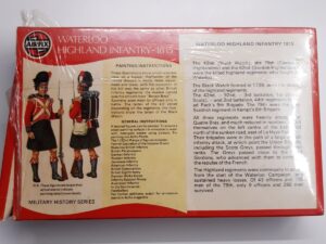 A vintage box Airfix Waterloo Highland Infantry in 1/32 scale from 1973. Box is pre-owned, the box comes with 32 figures. Box is opened, but overall in very good condition.
