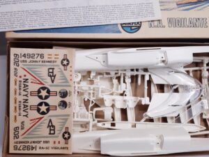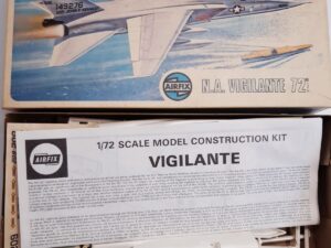 Vintage Airfix North American A-5 Vigilante 1:72 Scale model kit, issue from 1973. A nice model kit of this forgotten bomber. Content is complete with instruction manual and decals.