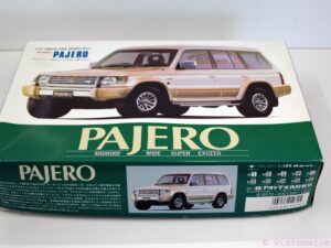Aoshima Mitsubishi Pajero – Urban 4WD series 1:24 scale model kit . Highly accurate and detailed model kit. Content is complete with decals and instruction manual (Japanese).
