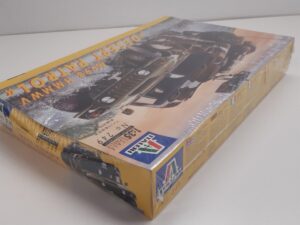 Italeri No 249 Model M998 HMMWV “Desert Patrol” 1:35 scale model kit. Ready to assemble plastic model kit.