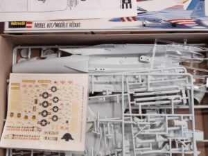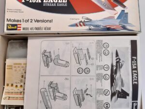 Vintage Revell F-15A Eagle “Streak Eagle” 1:48 detailed Scale Model Kit, edition from 1977. Can be built in two versions. Content is complete with instruction manual and decals.