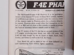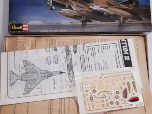 Revell McDonnell-Douglas F-4E Phantom II 1:72 Scale Model Kit, edition from 1976. Content is complete with instruction manual and decals.