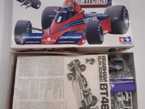 Tamiya Brabham BT46 Alfa Romeo Formula One 1:20 scale model kit, with driver figure. Drivers: Nikki Lauda and John Watson.