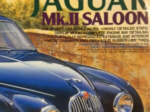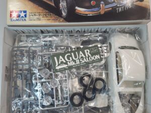 Tamiya model kit of this famous British “Jaguar Mk.II Saloon”. Highly detailed, 1/24 scale sport car series model kit.