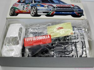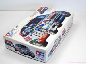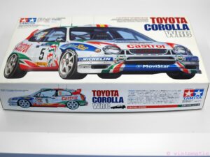 Tamiya model kit of this famous Japanese “Toyota Corolla World Rally Car”. Driven by rally drivers like Sainz and Auriol.
