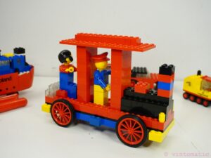 A vintage highly collectible lot of 4 Lego models from the early 1970’s: Lego set nr. 252, Lego set nr. 643, Lego set nr. 310, and Lego set nr. 379. These sets, in played-with condition, carry the charm of countless imaginative adventures. Comes with the original instruction booklets and an extra Lego figure. The sets look to be original, did not check if these are all the original bricks. A great vintage Lego set to play with or for decoration!