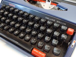 1970’s working Brother Deluxe 250TR Typewriter With Case, Made in Japan, Blue Typewriter.